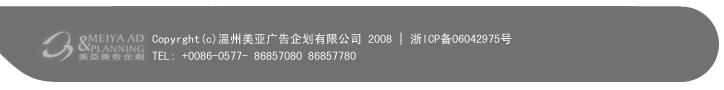 美亚广告企划,以先为荣。近年来的追求和发展,我们以专业的整合营销策划、CI 形象策划、平面形象设计、商标设计、画册设计、印刷设计、喷绘写真、广告制作、媒体代理等享誉业界。近年来...
